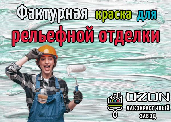 К сожалению в одной статье невозможно раскрыть и обсудить все и сразу, например интересующие вопросы, такие как: фактурная штукатурка; колеровка фактурной краски; нанесение фактурной краски; применение фактурной краски; расход фактурной краски, характеристики фактурной краски и т.д. Но мы расскажем немного об ассортименте текстурных красок, производимых лакокрасочным заводом Озон:-