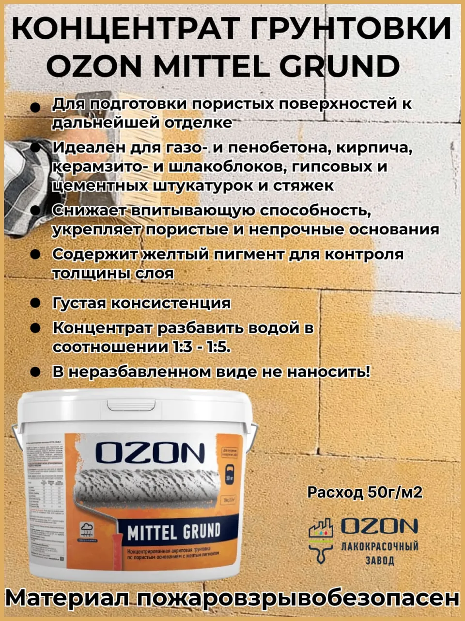 Предназначена для обработки поверхностей: газо- и пенобетона, керамического и силикатного кирпича, керамзито- и шлакоблоков, гипсовых и цементных штукатурок; бетонной, цементной и гипсовой стяжки. Эффективно снижает и регулирует впитывающую способность, укрепляет пористые и непрочные основания. Для получения готовой к применению грунтовки концентрат разбавить водой в рекомендованном соотношении. В неразбавленном виде не наносить! Содержит желтый пигмент для контроля толщины слоя. Густая консистенция. |