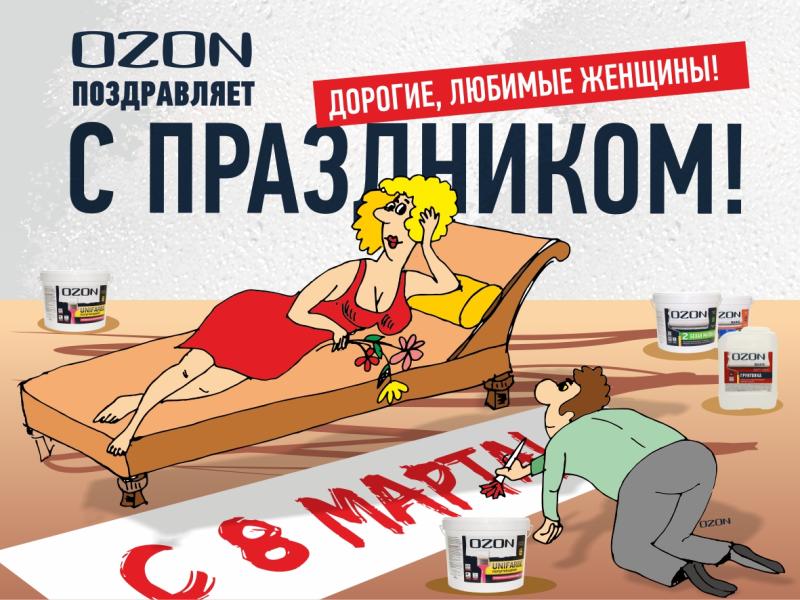 От лица мужчин коллектива Лакокрасочного завода Озон хотим сказать спасибо Вам за Вашу красоту и заботу, ведь именно эти моменты делают мужчин счастливыми, а значит довольными, расслабленными и щедрыми.